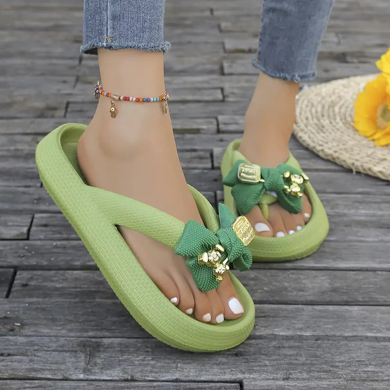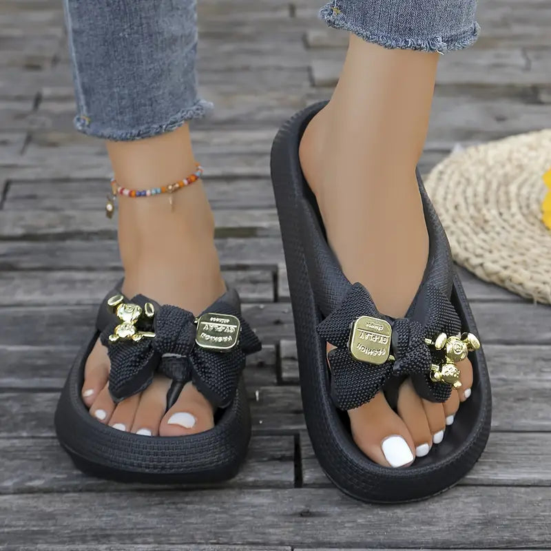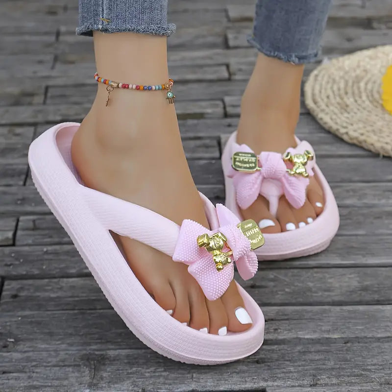 Anneliese – Infradito con plateau, fiocco e dettaglio ciondolo dorato