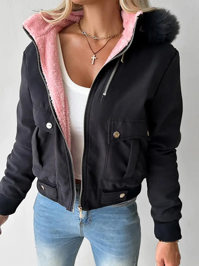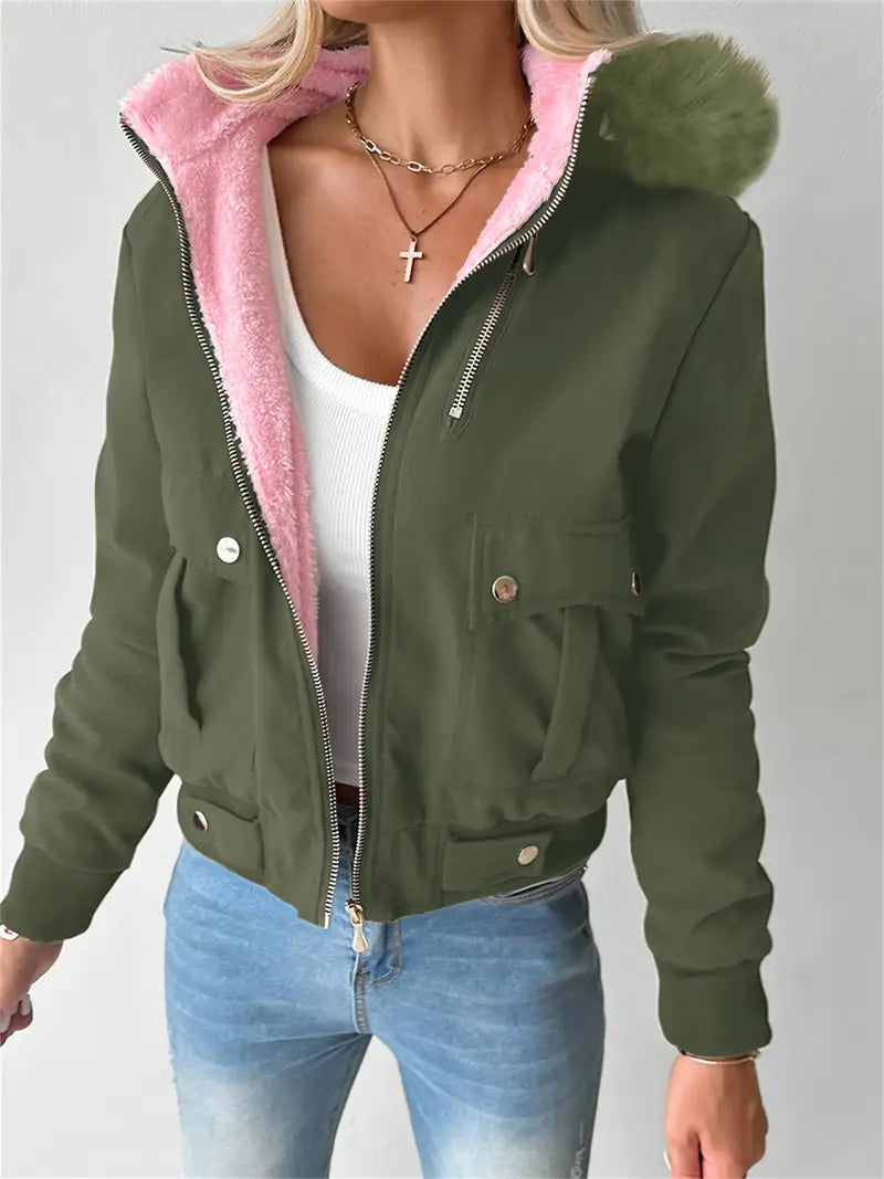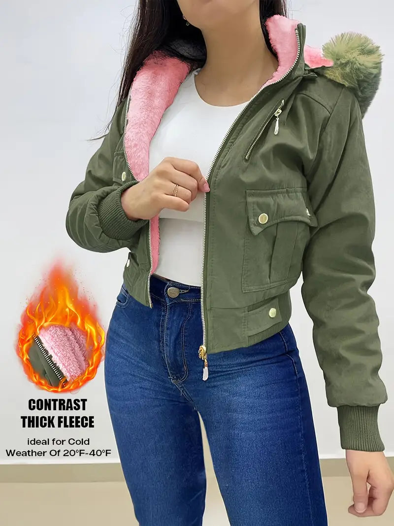 Questa giacca corta, realizzata in un resistente misto cotone e con una spessa fodera in pile a contrasto , offre un calore eccezionale.