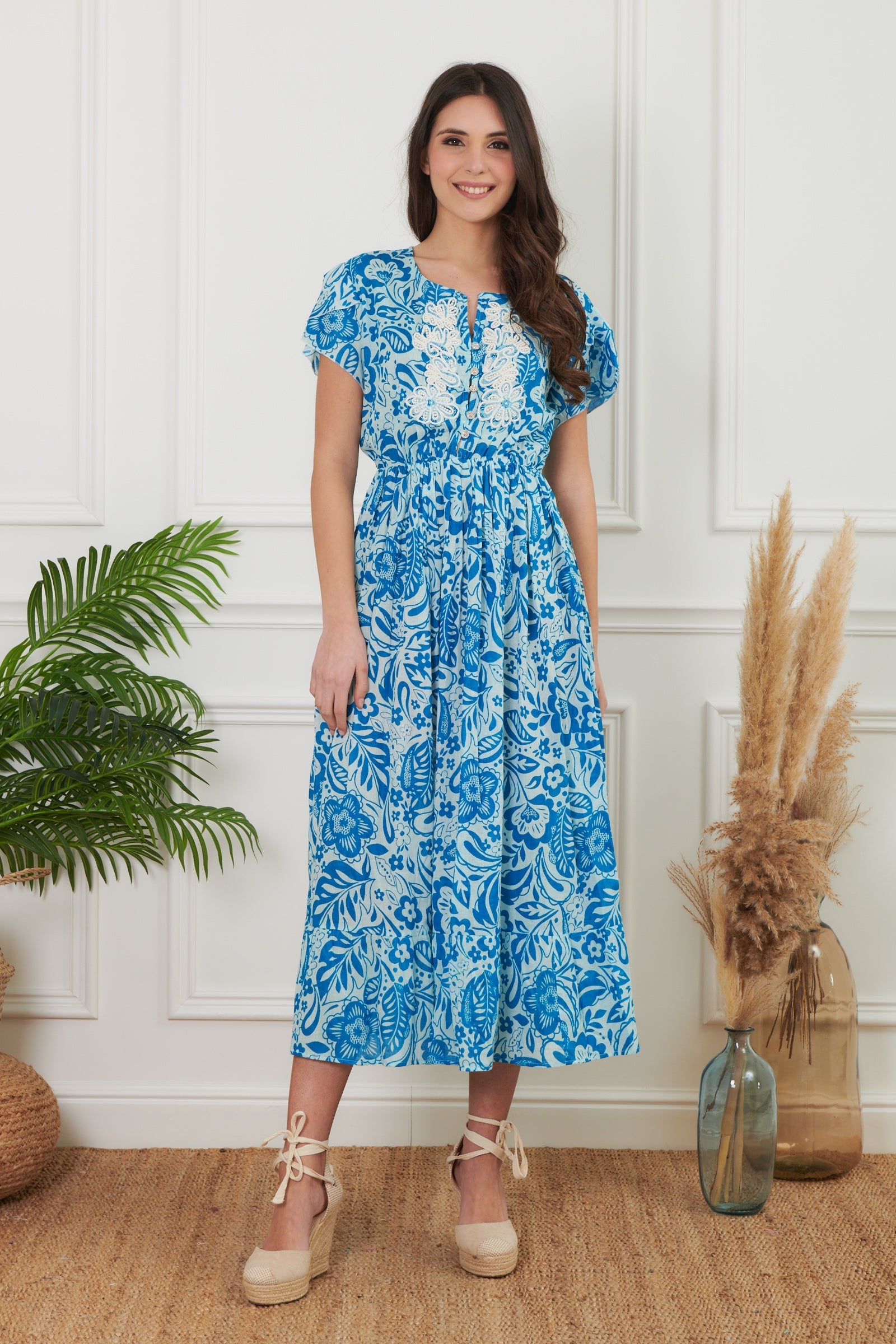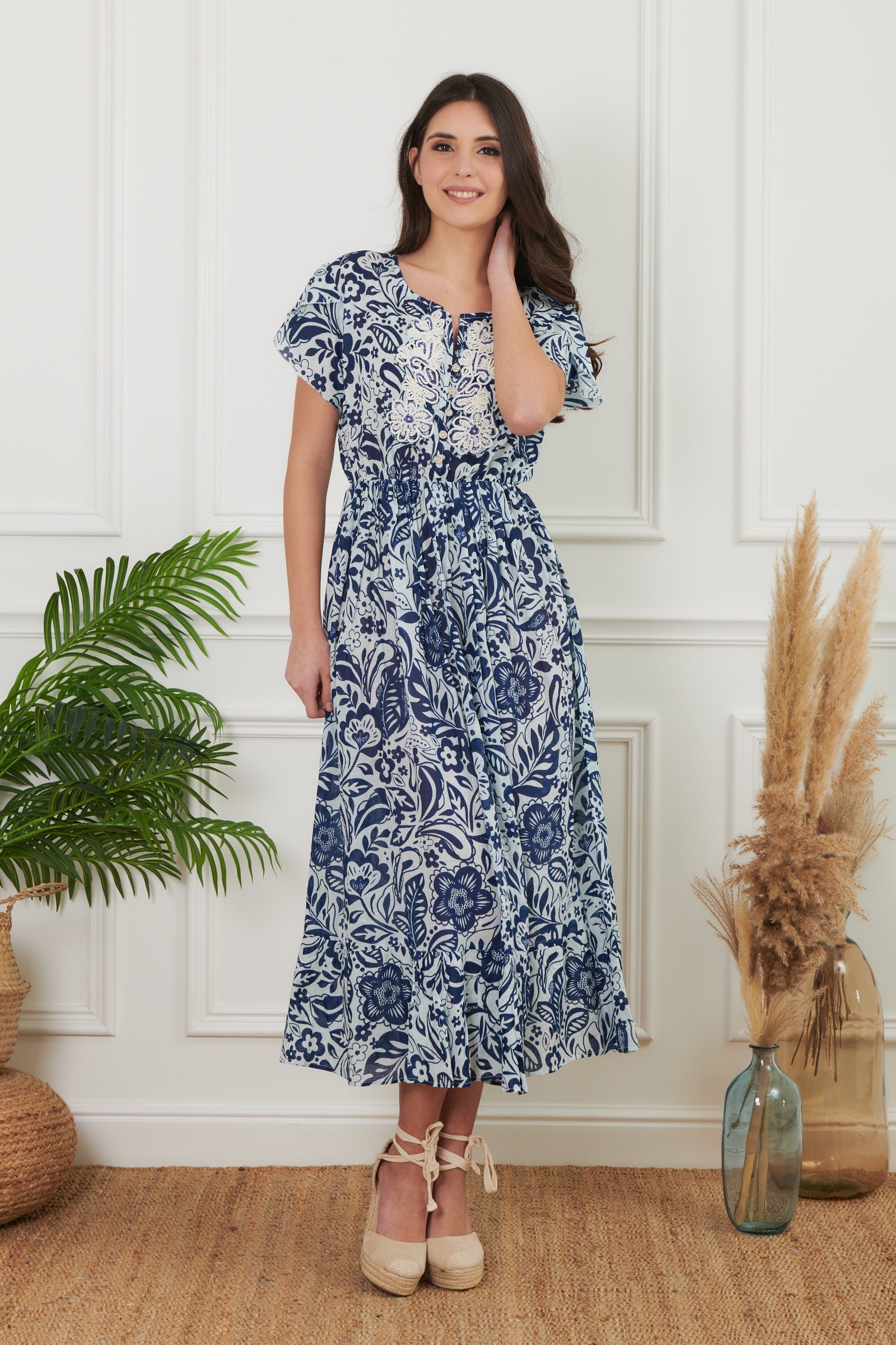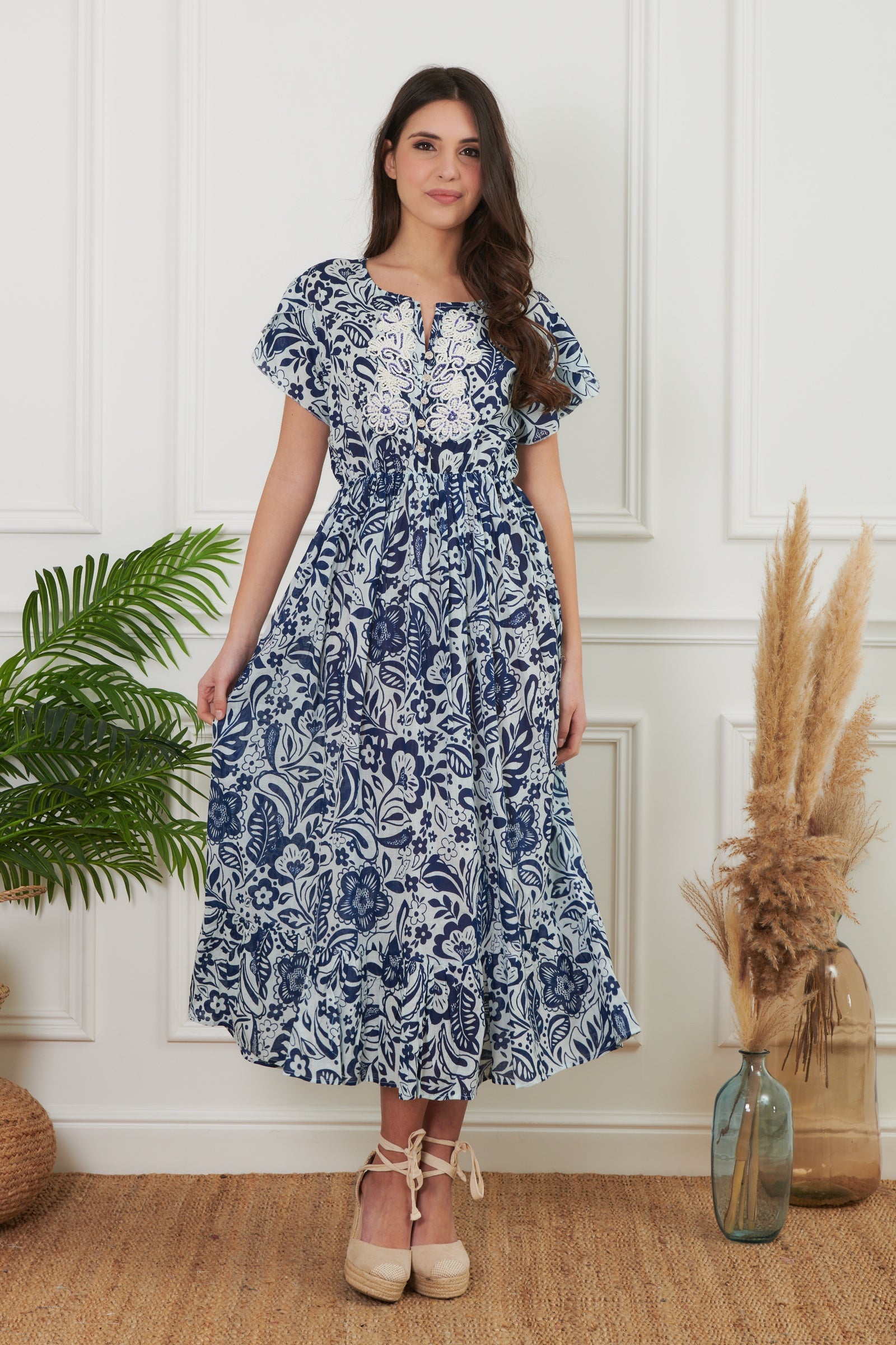 Bruna - Abito Lungo Fantasia e Ricami Stile Unico