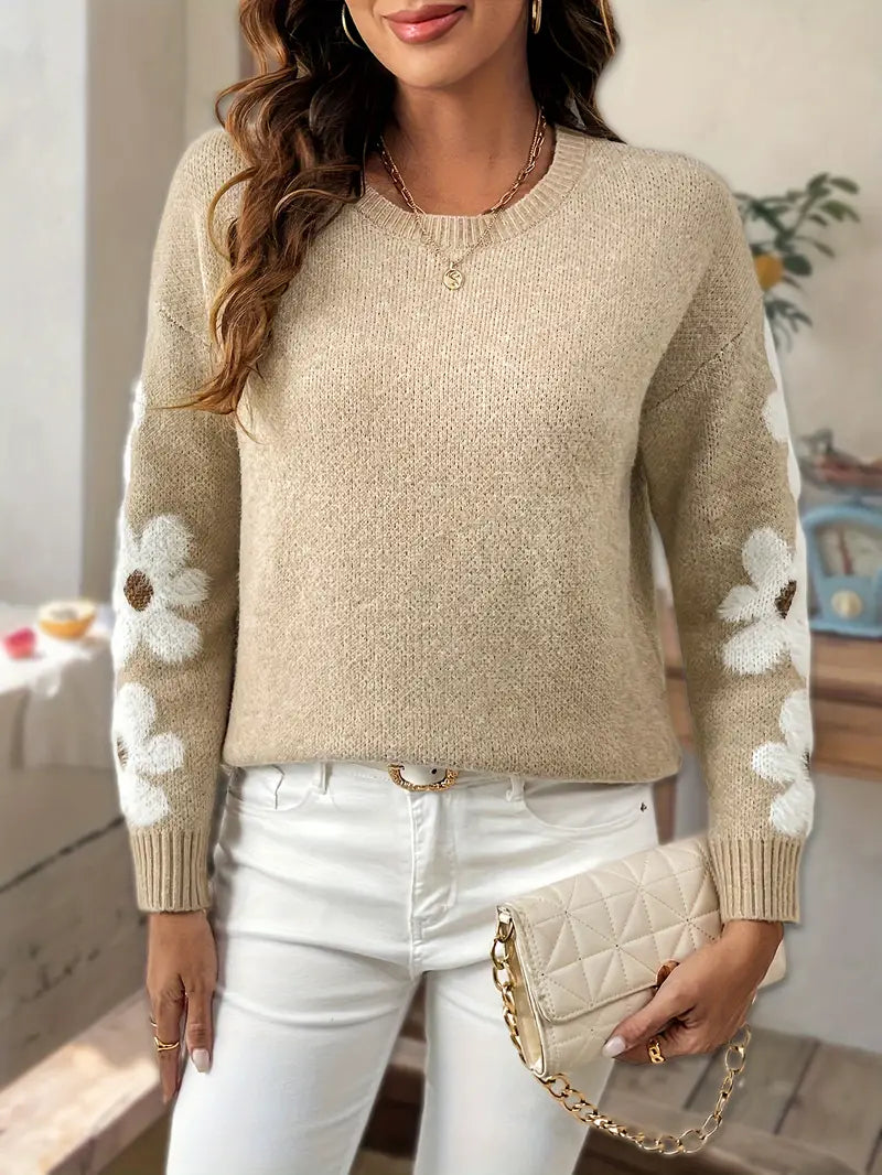 Realizzato in un morbido e soffice misto maglia, questo accogliente maglione presenta un'affascinante stampa floreale sulle maniche per un tocco giocoso ed elegante.
