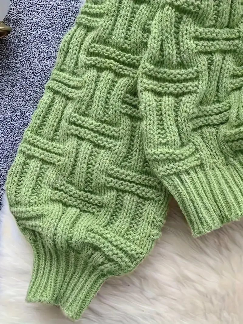 Questo accogliente maglione verde ha una splendida trama a canestro ed è realizzato in un tessuto misto morbido e traspirante per garantire calore e comfort. La vestibilità ampia con polsini, orlo e scollatura a costine assicura una sensazione di comfort e lusinga , perfetta per essere indossata a strati.