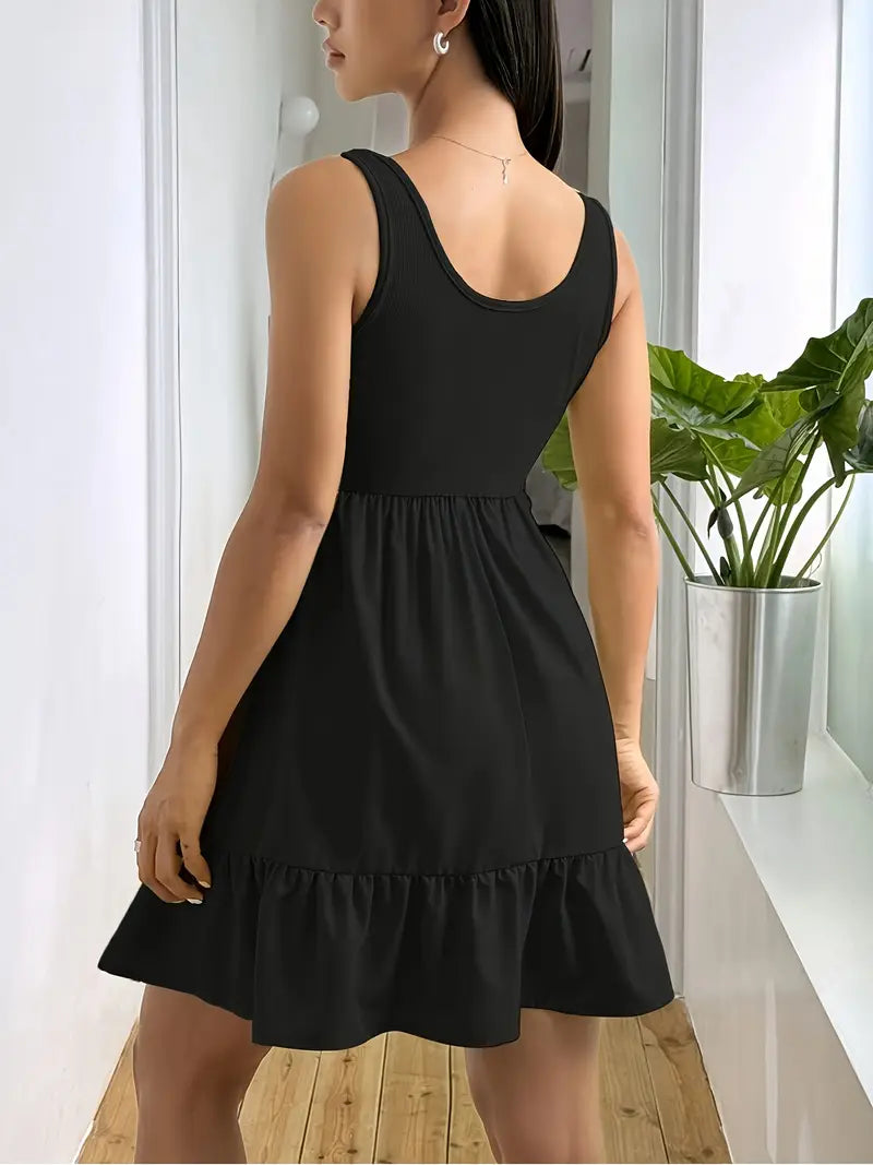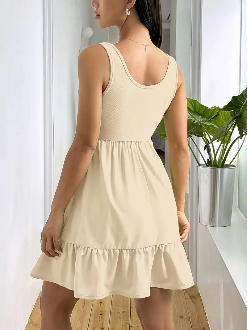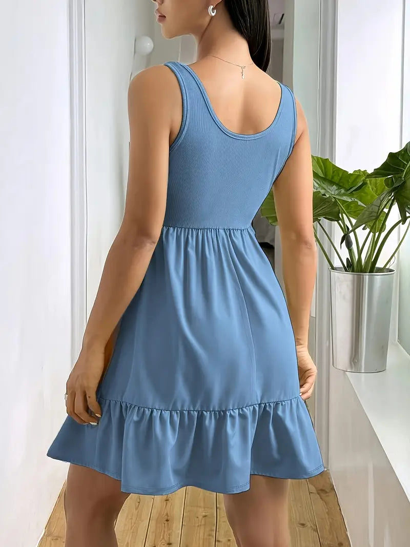 Rendi più vivace il tuo guardaroba per la stagione calda con questo mini abito senza maniche e senza sforzo con top in maglia a coste. Realizzato in una pregiata miscela di morbido cotone e tessuto traspirante, l'abito è caratterizzato da un top in maglia a coste che si modella delicatamente alle vostre forme, abbinato a una gonna fluida e leggera che offre il massimo comfort e movimento.