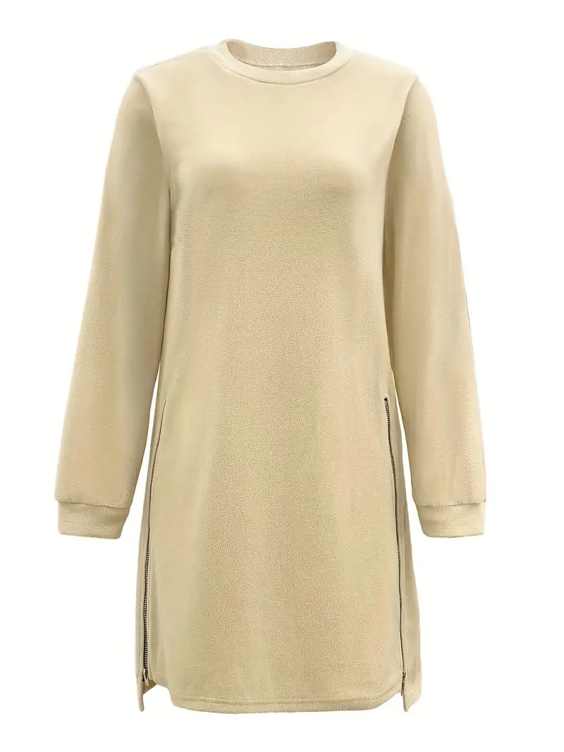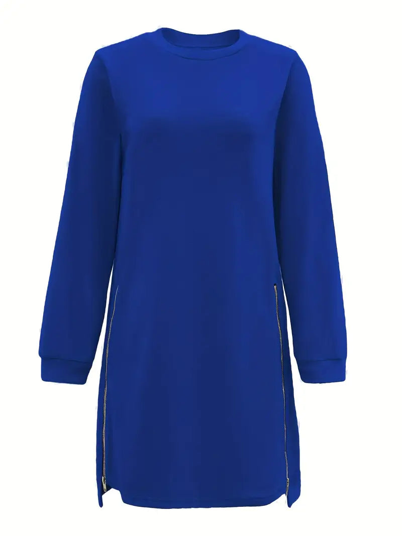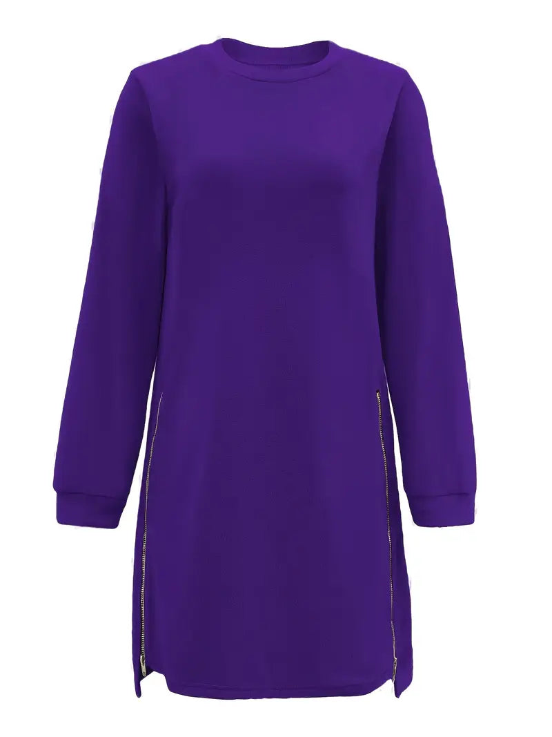 Questo abito colorato è realizzato in una maglia morbida e accogliente e offre una vestibilità ampia e oversize per il massimo comfort. È dotato di eleganti cerniere laterali che possono essere regolate per una maggiore versatilità e un tocco di stile .