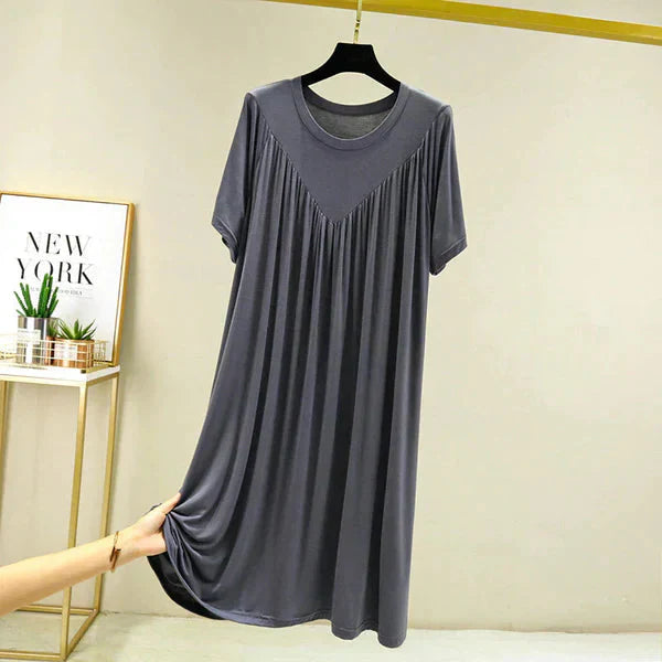 Questi abiti larghi e a maniche corte sono incredibilmente morbidi e confortevoli, perfetti per il relax o per un abbigliamento casual di tutti i giorni. Sono realizzati in un tessuto fluido ed elasticizzato e presentano un carré delicatamente arricciato che aggiunge un volume e un flusso sottili alla silhouette.