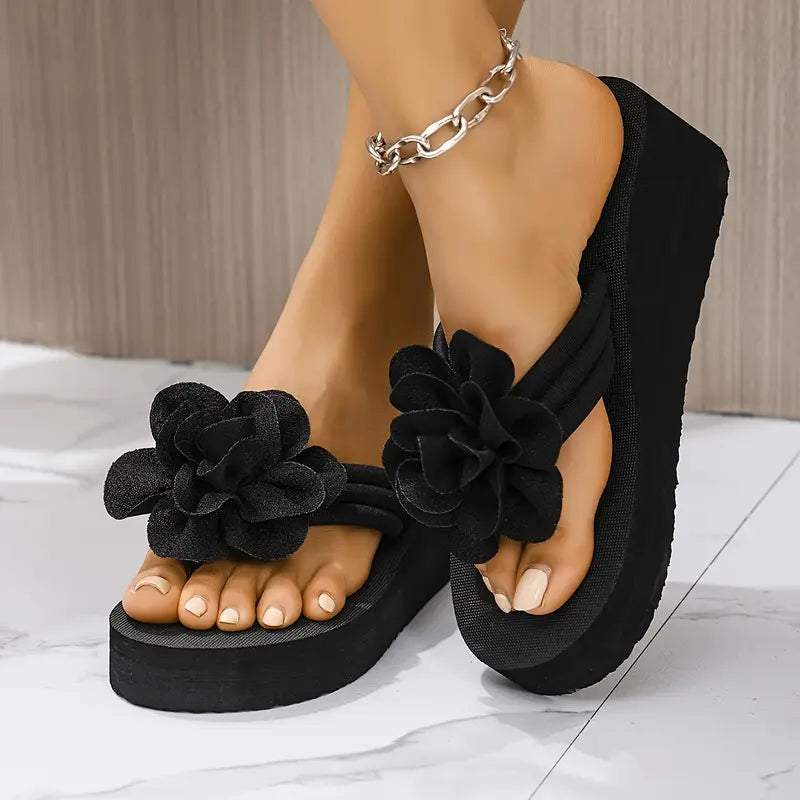 Questi sandali con plateau e suola in morbida schiuma offrono un'ammortizzazione leggera e un comfort che dura tutto il giorno. Il dettaglio floreale oversize sul cinturino aggiunge un tocco affascinante e femminile, mentre il design a tre cinturini garantisce una calzata sicura con un tocco di stile.