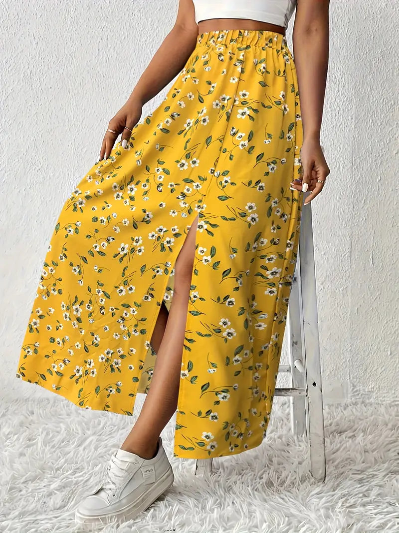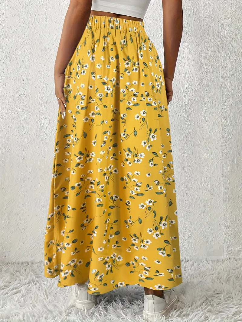 La leggerezza del materiale conferisce alla gonna una silhouette ariosa senza compromettere la struttura. È interamente stampata con un affascinante motivo floreale che non sbiadisce, mentre l'elastico in vita assicura comfort e flessibilità.