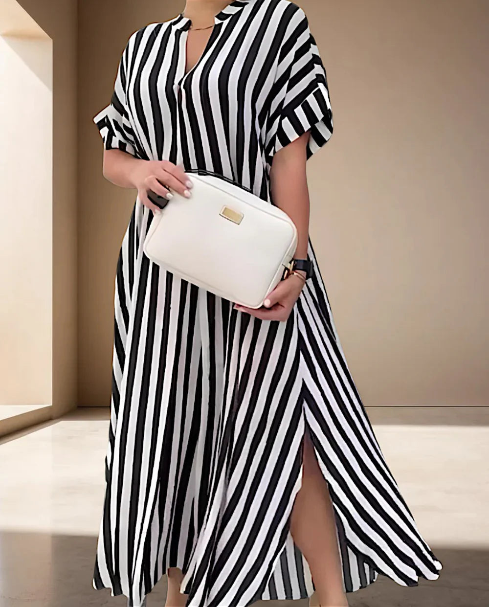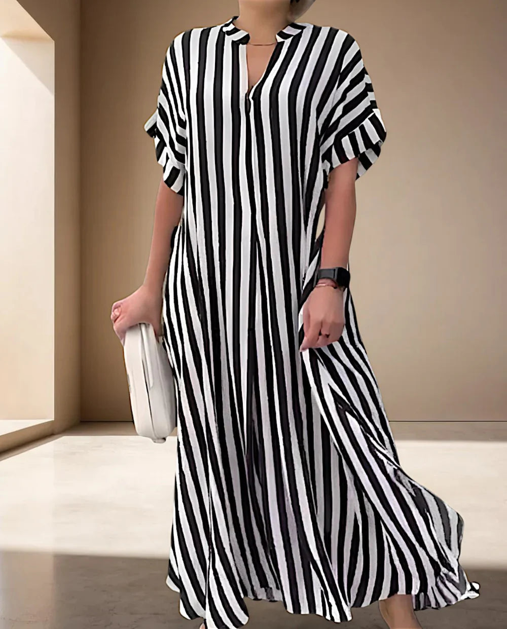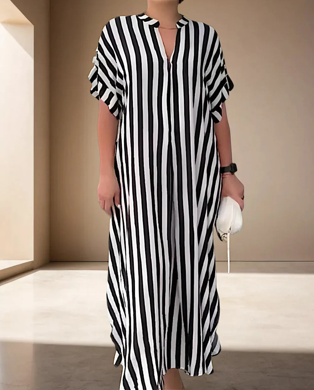 Questo maxi abito leggero combina un'eleganza senza sforzo con una vestibilità rilassata, che lo rende la scelta perfetta per le uscite casual, le vacanze o le occasioni di caldo. Realizzato in un tessuto misto di alta qualità, leggero e traspirante, è comodo da indossare tutto il giorno.