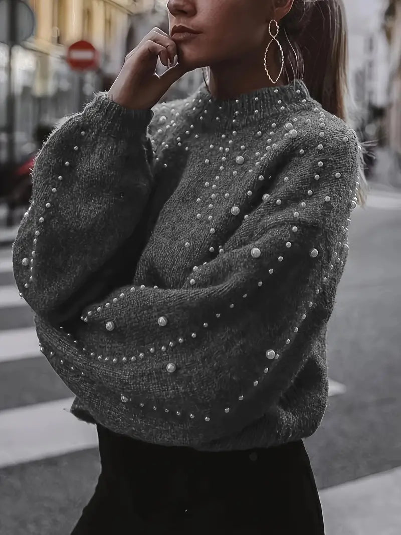 Accogliete la stagione fredda con stile grazie a questo elegante maglione con finiture in perle, che vi terrà al caldo e allo stesso tempo alla moda. Realizzato in morbida maglia di alta qualità, con un accogliente collo a rotolo e una vestibilità ampia , questo maglione offre comfort e versatilità. Il suo design senza tempo lo rende un capo perfetto da indossare a strati o da solo nelle fredde giornate invernali .