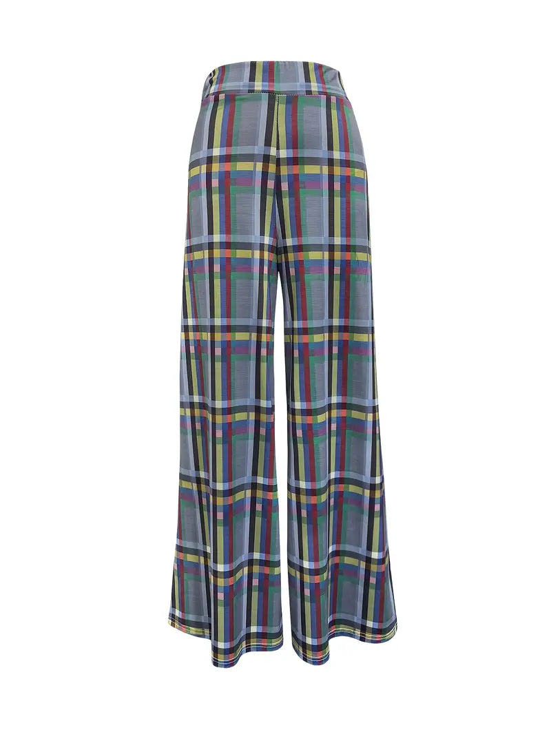 Nyctessa - Pantaloni a quadri a vita alta e gamba ampia