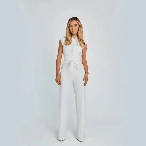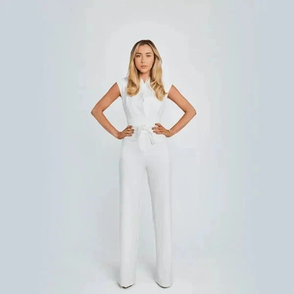 Queste tute senza maniche , con spalle leggermente imbottite e una cintura a vita alta che sottolinea il punto vita, offrono una vestibilità lusinghiera e allungata attraverso le gambe larghe. Disponibili in colori versatili , sono facili da abbinare a tacchi o scarpe basse per un look elegante e moderno.