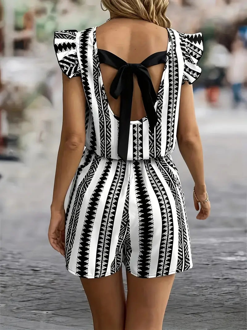 Il dettaglio che attira l'attenzione? La schiena aperta con un grazioso fiocco che dà un tocco giocoso a . Questa leggera tutina di è perfetta per le passeggiate del fine settimana, per un brunch sulla spiaggia o per le vacanze. Con i sandali e la borsa di paglia, sarete subito nel mood estivo.