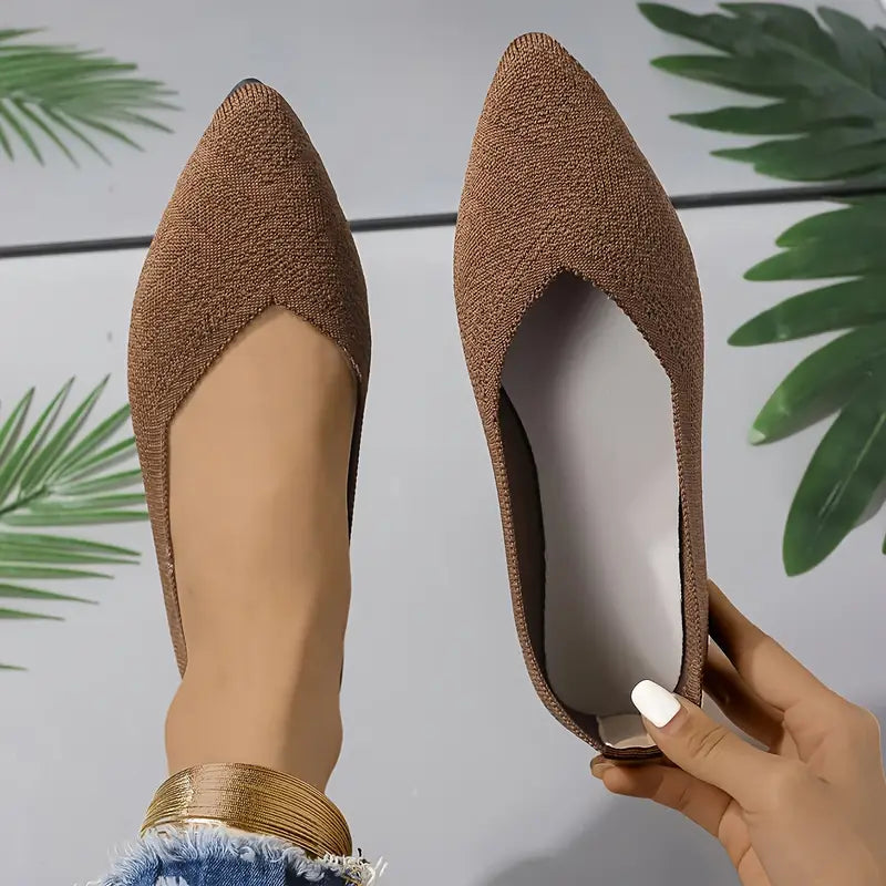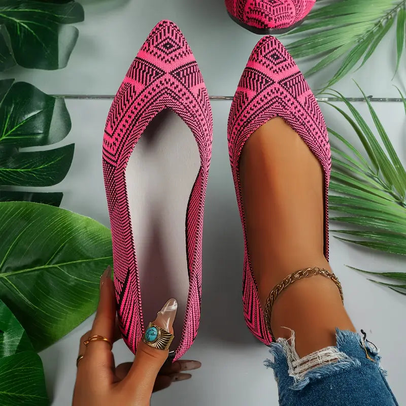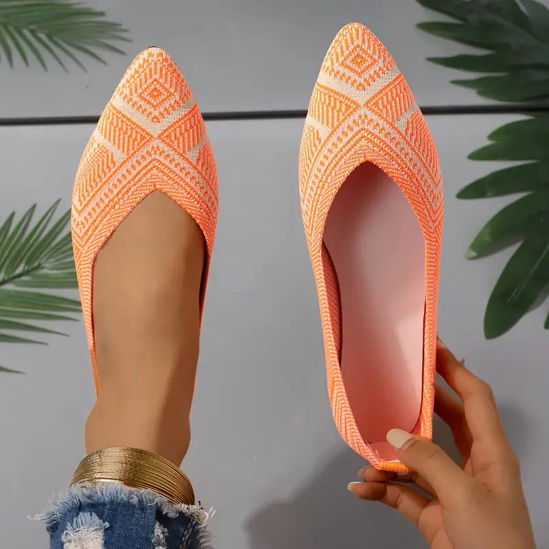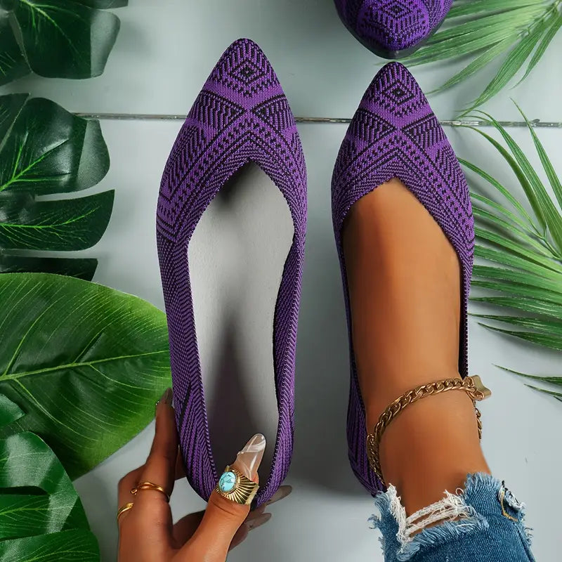 Aggiungi un tocco di colore e raffinatezza al tuo guardaroba con queste eleganti scarpe basse in maglia a punta. Con una tomaia in tessuto traspirante con motivi elaborati, queste scarpe basse combinano comfort e estetica moderna. Il design leggero e la soletta imbottita garantiscono comfort per tutto il giorno, mentre la punta sottile e affusolata migliora il tuo look.